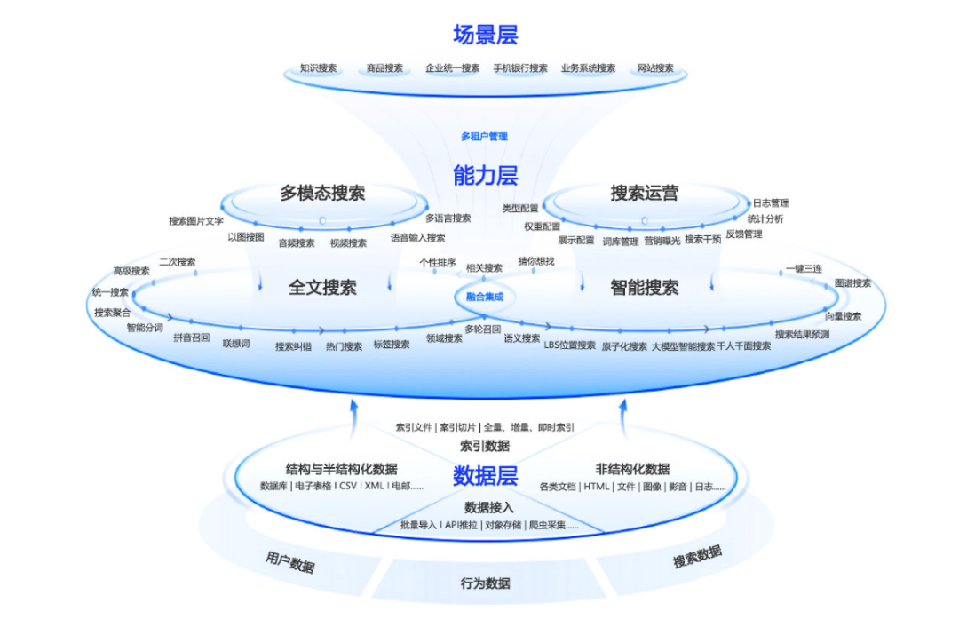 – 多租户支持:一个平台可服务多个业务单元,为银行集团提供多场景搜索支持。
