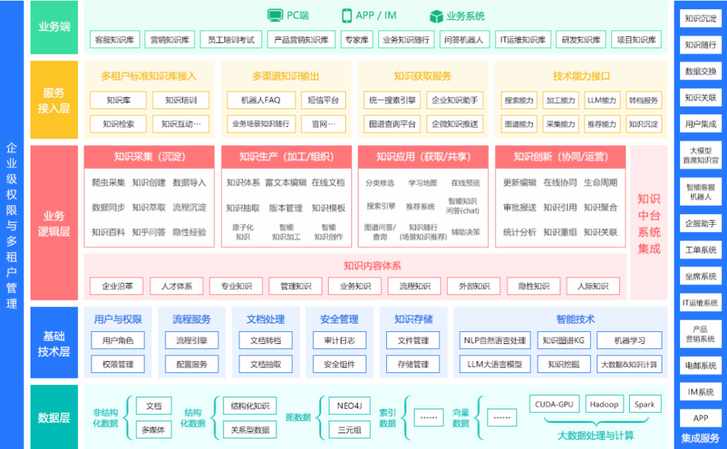 KMPRO6.0平台集知识门户、知识库、知识社区、人际网络、培训考试、多租户管理等模块于一体,支持从知识创建、审核、获取、应用到激励的全生命周期管理。平台采用B/S架构,支持多种终端访问,提供开放API接口,易于与现有业务系统集成。