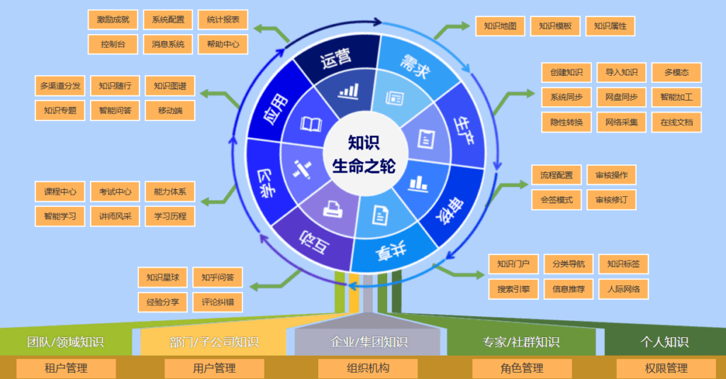 平台功能全面覆盖知识“需求—生产—审核—共享—互动—学习—应用—运营”全生命周期,包括知识“分类体系与规范、创建与加工、共享与获取、查阅与互动、社区与隐性知识管理、转移与培训、多渠道应用、智能应用”的全流程核心模块,形成从知识沉淀、流转到赋能业务的闭环管理机制,助力银行实现知识资产的有序积累、高效复用与持续增值。