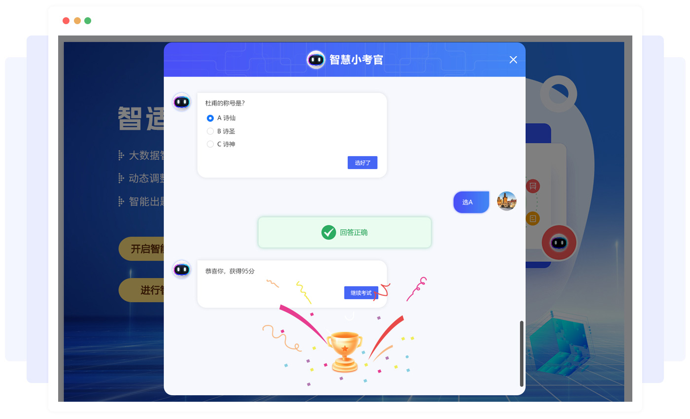 基于知识库内容,结合Deepseek大模型能力,一键生成培训课件、讲师话术,生成考试试题。选择学习知识范围,大模型作为智能小考官,随机出题测试陪练。